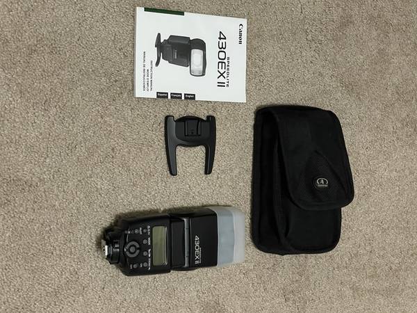 Canon Speed Lights, 430EX II. Comes with manual, Tamrac case, and everything seen in the photos. Kept indoors hardly used.