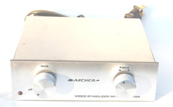 This Archer Model 15-1271 Video Stabilizer and RF Modulator provides variable lock video stabilization of either of two switchable video sources via RCA phono jack inputs and outputs, plus an RF ‘F’ connector output switchable between Channel 3 and 4. To see over 200 related items, click on the “more ads by this user” link at the right. This item is in excellent condition, but is sold as-is, no returns, so pickup and inspection in Tucson, Arizona, is preferred. Out of town buyers email with any questions and for payment and shipping options.