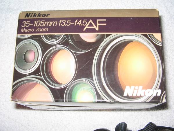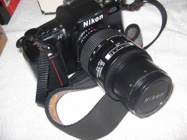A Nikon N 6006 35mm. Camera-Features-BriteView High Speed Autofocus-Hide Away built-in Speedlight-3 light meters:Matrix,Center-Weighted & Spot-Automatic Film Handling- Nikon Lense & System compatibility, comes with a Nikkor 35-105mm. f3.5-f4.5 macro zoom lense AF, also a profesional Carrying Case, this is a original $600 camera, will sacrifice at $275.00 call after 12 noon @ show contact info