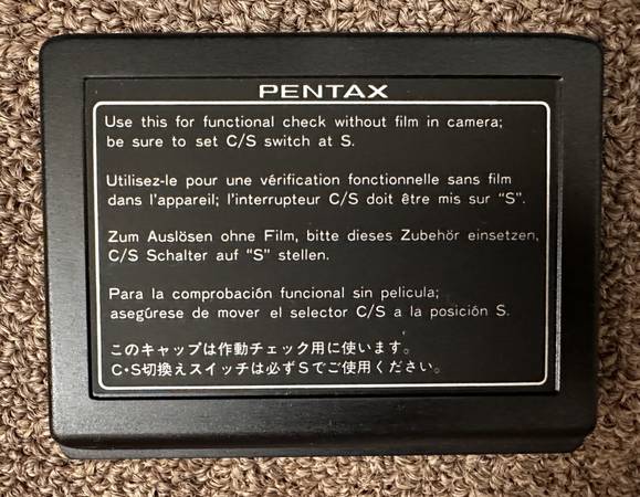 Selling a rear body cap for Pentax 645 medium format cameras. Keeps the back of your camera sealed and protected when no lens is attached—great for storage or travel.