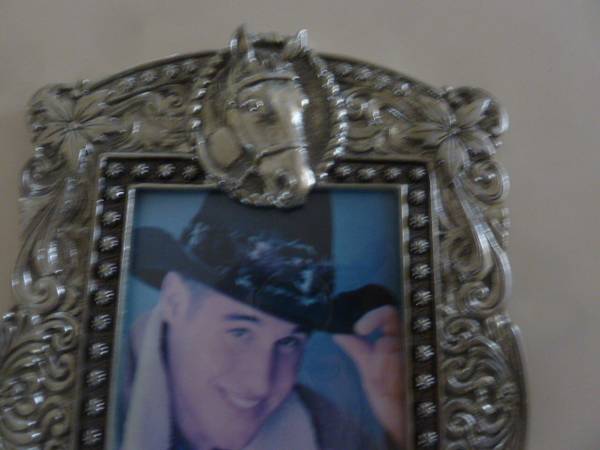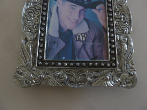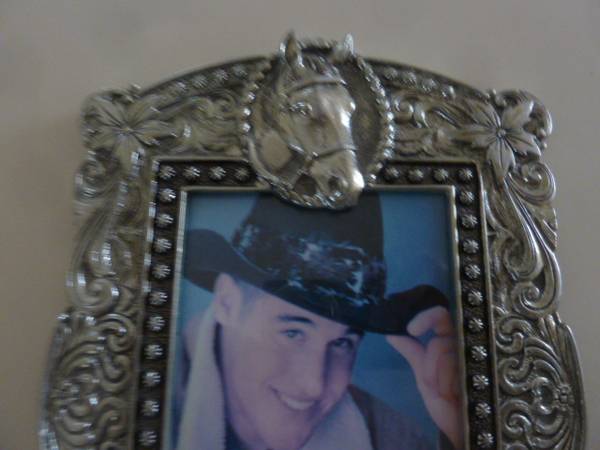 Up for sale...Vintage FIGI Equestrian theme 4x6 Pewter picture frame..."Round Up Ranch" 2000...black velvet back & stand...excellent condition...$10.00... contact by a phone call...