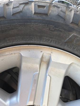 Stock 18 inch 6 lug chevy rims for silverado or tahoe. 265/65 r18 nitto ridge grapplers with some good life left on em. 500.00 obo. Pick up in safford.