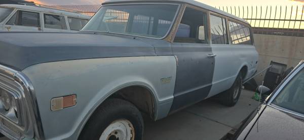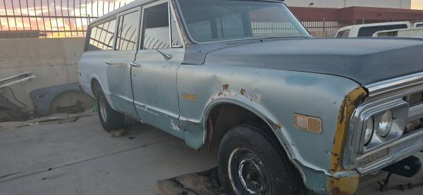 72 suburban used a few parts off it the passenger fender and doors i swapped onto another one. This one wasn't wrecked. Has a solid floor and body isn't rusty. No drivetrain or seats have a fee misc parts for it in boxes. Was originally a 2wd 3/4 ton. Good bones for a build.