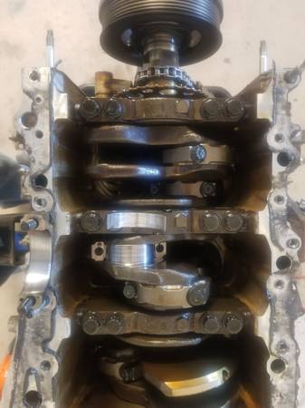I have a engine I pulled out of a 2005 Toyota Tacoma with 109K miles on it. The engine had a slight knock in it and when disassembling the motor I found out the connecting rod bearing on the middle cylinder on the passenger side had started to go bad. As you can tell by the pictures the bearing did not spin in the rod, only had too much wear. So a crankshaft regrind, some bearings and some gaskets would fix this engine. I just do not have the time to do so. The pictures of inside the oil pan only showed a couple of flakes of bearing material. Everything is included in the listed price, bolts, nuts, sensors, coils, plugs, engine mounts, intake...everything. The fifth digit in the truck's VIN is "U".