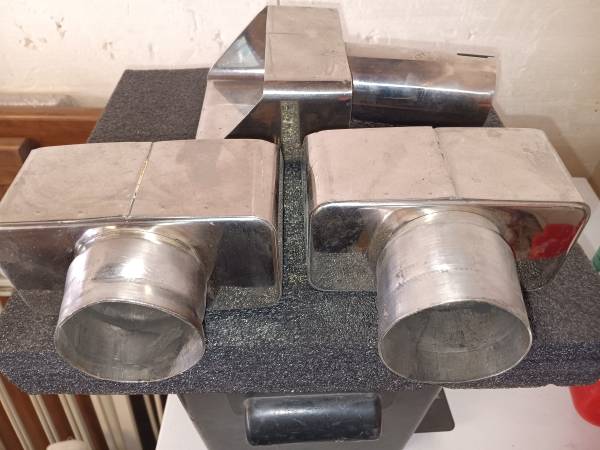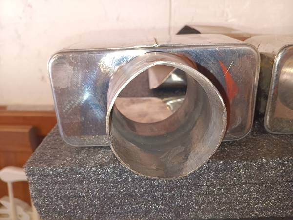 Corvette Exhaust tips for 1970 - 1973. 2 are near new left and right , but have been expanded to fit 2 1/2 " exhaust and 1 is brand new , never installed for stock sized exhaust. $45.00 or best...