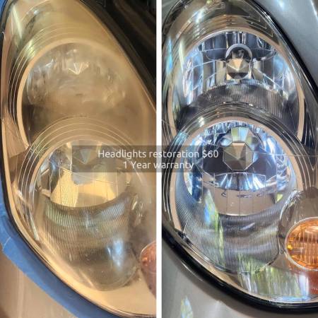 LOOK AT MY PHOTOS! If your headlights are yellow, foggy, or hazy, don't replace them. I can restore them to a crystal-clear, "like-new" finish for just $60.
