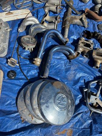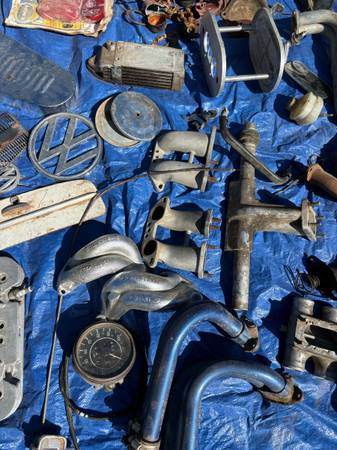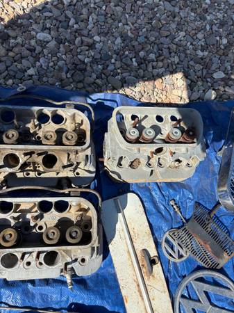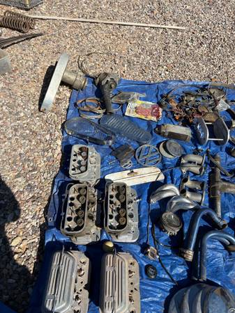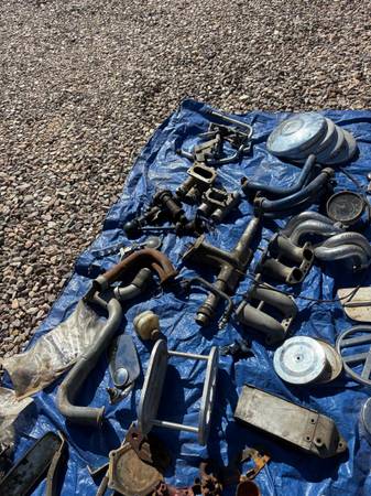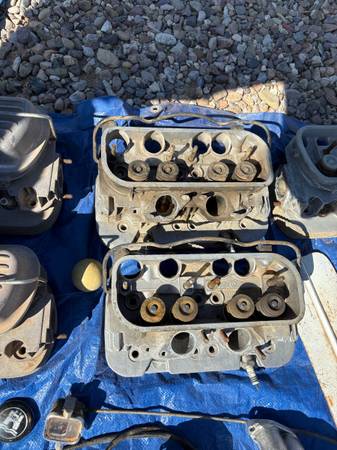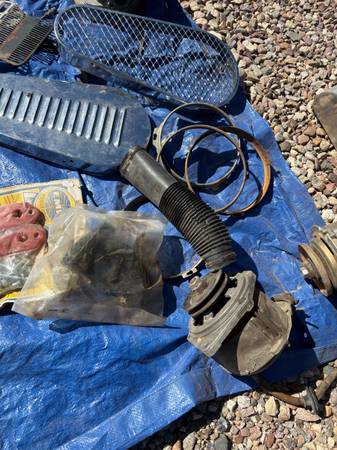 Dual port heads, high rise intake manifolds, fan shroud , alternator, lots and lots of parts in yard sale.