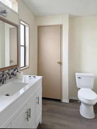 This mobile home has been beautifully redone with new flooring throughout, all new kitchen cabinets, new dishwasher, a new range and both bathrooms receiving a complete makeover. The kitchen is centrally located, large and roomy, ideal for a person who likes to cook. A dining table to the side makes this a comfortable place to eat as well. In front of the kitchen is a large family room, with plenty of space for activities, entertaining, and relaxing.