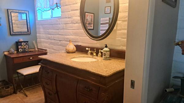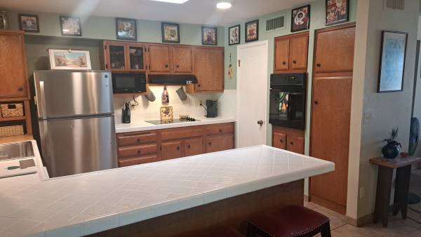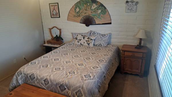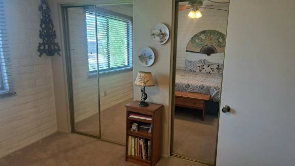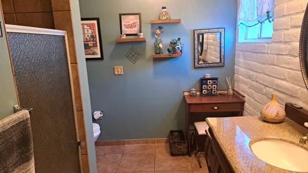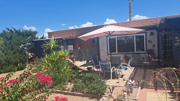 A truly unique 2 bedroom 2 bath home 2 car garage in Green Valley Fairways, includes a GVR membership. This home welcomes you into a relaxing, tranquil semi-open floor plan. With views of the mountains. There are numerous upgrades, tastefully done with a flair of adventure in the kitchen, bathrooms and Az. room. New HVAC unit and hot water heater installed in 2021. Also a new mini-split in Az room. Large back yard features a ramada perfect for enjoying the southern Az. weather. Native vegetation abounds. Unexpectedly, a tiled screened in room connects to the master bedroom affording natural light and additional outdoor living space. Courtesy to Brokers. Bring your Broker with you.