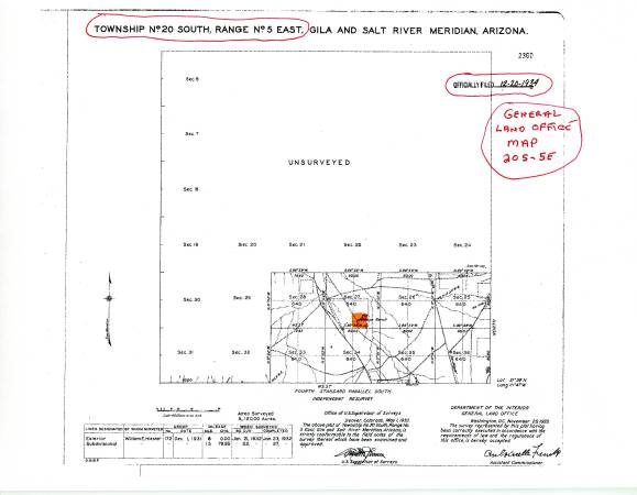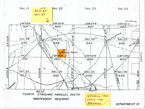 This parcel was inhabited at one time. Remnants of a well site and the foundation of an adobe structure are on the property. The parcel was known as the "Ventana Ranch" per the GLO map and field notes to the land survey which was done in 1932 (see copy of GLO map).