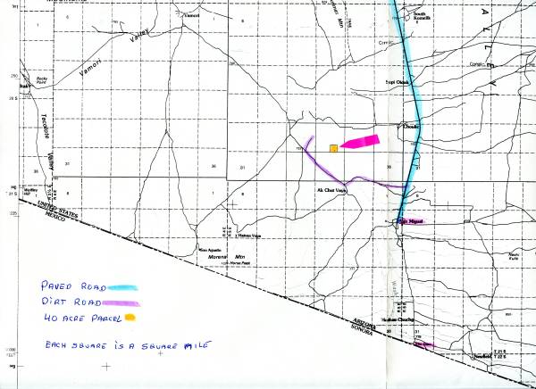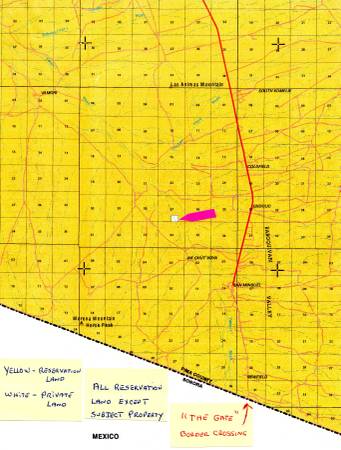 This 40-acre parcel of private patented land is located inside the Tohono O'odham Indian Reservation and is approximately 6 miles north of the Mexico/Arizona International Border and 4 miles northwest of San Miguel (see attached maps).
