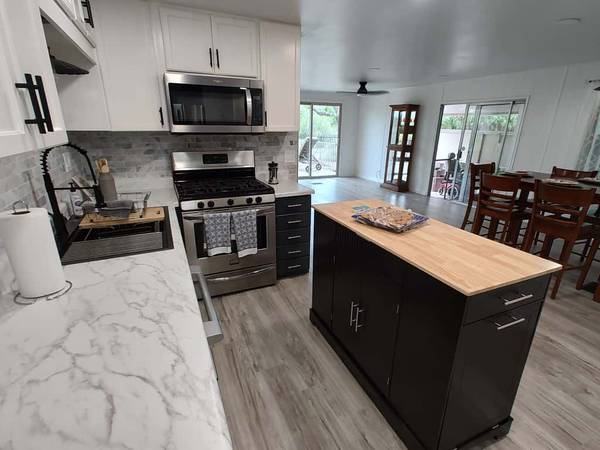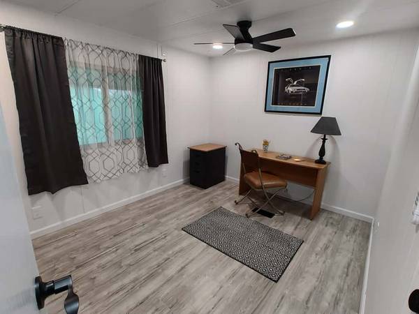 Home details available at https://www.mhvillage.com/homes/3403413 Skyl Mobile Home 40' X 60' 2 Bedrooms 2 Bathrooms Partially Furnished Trim Color: White Roof-Over Roof Metal Siding Metal Skirting Drywall Ceilings Panel Walls Gas Heating Carport Storage Shed Gutters Deck Patio Thermopane Windows 4 Ceiling Fans Central Air Laundry Room Microwave Oven Refrigerator Dishwasher Clothes Washer Clothes Dryer Lot Rent: $620/Month