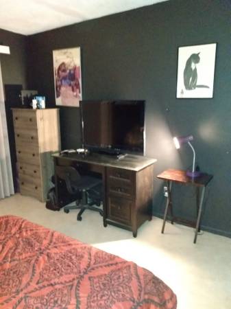 Totally furnished room for rent. All utilities included. Covered carport parking. Share with clean, quiet, considerate straight Male. Looking for employed or retired self reliant person. Community pool located behind the house. Wifi and Roku TV. Included. Laundry in house included. Absolutely no smoking,vaping or active alcoholics or drug addicts. Call Jeff to see the house and room. show contact info