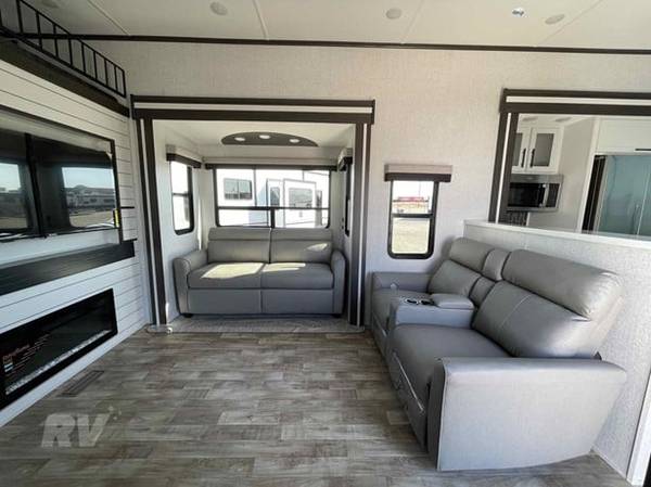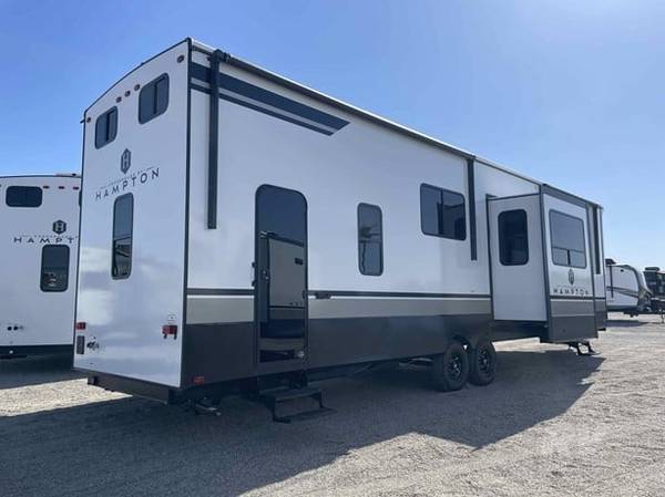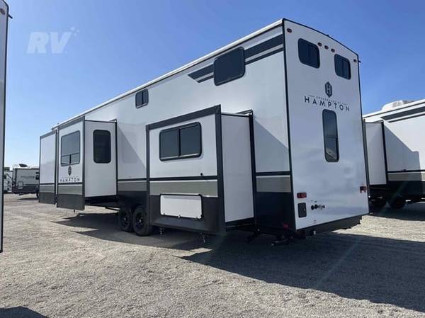 Spacious and family-friendly RV. The Hampton 388FKL offers modern amenities and outdoor living space, perfect for unforgettable family adventures or Park it and live it now.