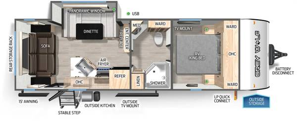 The Grey Wolf by Cherokee is engineered with impeccable quality, distinctive features, superior comfort and remarkable affordability. Grey Wolf offers our customers a chance to escape the ordinary and relax, to enjoy family and friends and to see nature in all its beauty and wonder. These special life moments are the reasons we take such pride in all we do.