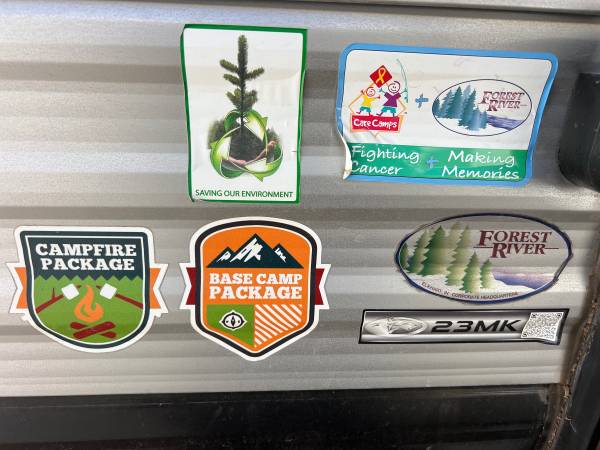 Sleeps 6, Queen bed, Sofa Sleeper, U-Shape Dinette, Three burner Stove/Oven, Microwave, Full size electric refrigerator, Exterior mini kitchen, 15 foot power awning, One slide out, Two 9.4 Propane Tank, Front/Rear manual leveling jacks, 6 gal water heater, Fireplace, 15,000 BTU air conditioner, Exterior TV mount, Radio, Interior/Exterior Speakers, BT capable, Black tank flush, Large folding assist entry door grab handle,