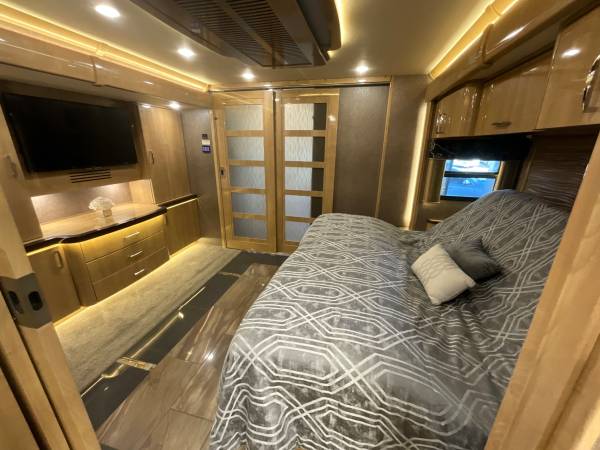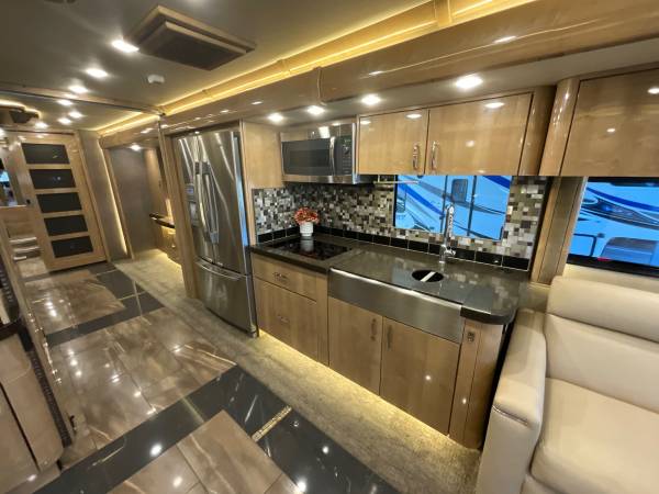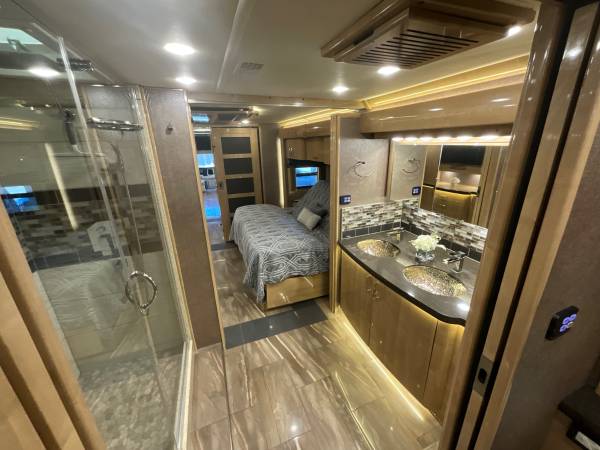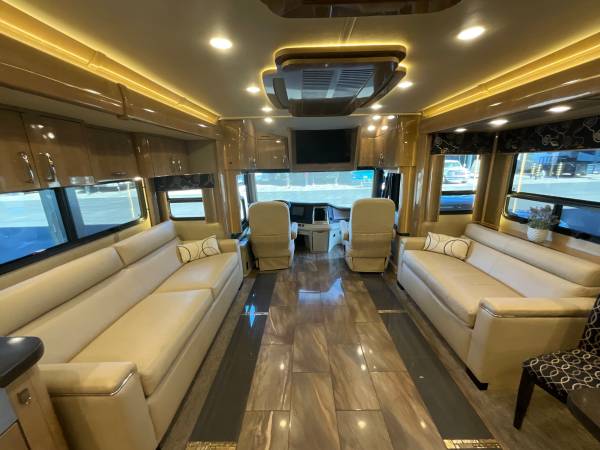 This Absolutely stunning 45-foot bath & a half motorhome, built on the Freightliner Chassis, is powered by the mighty ISX 600 Cummins engine. Has airbag ZF independent suspension, with passive steer tag axle. 3 total slide outs. 2 on the passenger side and a full-length super slide on the driver’s side. Low mileage, around 48,000 All tires were replaced new about a year ago, tire date code is 0324. Too much to list. Please call with any questions. No texts please.