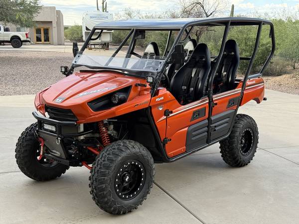2014 Kawasaki Teryx 4 Limited Edition; 800 CC V-Twin engine; EPS (electric power steering), Fox Podium shocks, All four seats are very comfortable and in great condition (no rips or tears); Plastic and paint are in excellent condition; Low miles and hours (2,098 miles and 212 hrs); Clean and clear title in hand.