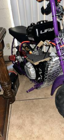 has a 212cc 7hp lifan engine with electric start. has nibbi grips and throttle cable. did a gov removal, added a torque converter and a vm22 carb. uses a 35# chain back tire is flat but not punctured. i have a battery for it but its pretty heavy and ill throw in an extra throttle cable both for free. cash only. text for questions