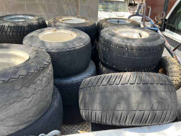 Plenty of Club cart , Yamaha, EZGO, Melex , etc golf cart 8” wheels with old tires, $5 dollars each , selling you the rims , tires are worn or flat but included FREE with purchase, some may pump up , most of them are 4x100 bolt pattern , No Calls After 9 pm. 520ninefivefouronetwo38 just 5 bucks each