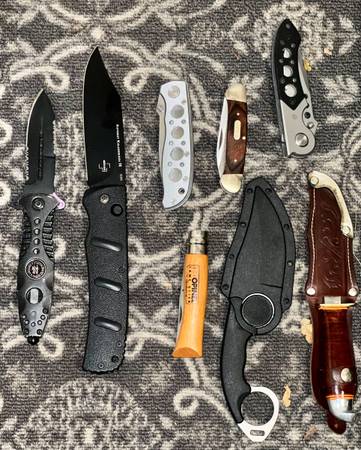 See pics New and used brands include Buck Cold steel Sharp Old Timer Case Boker Western Opinel prices start at $20