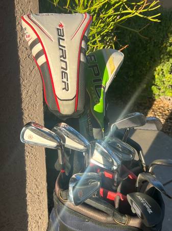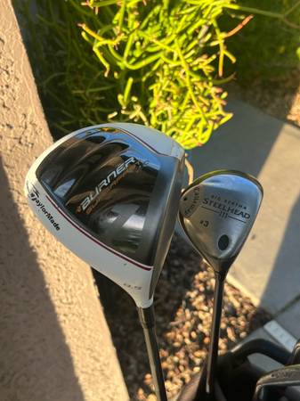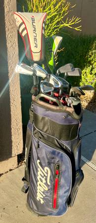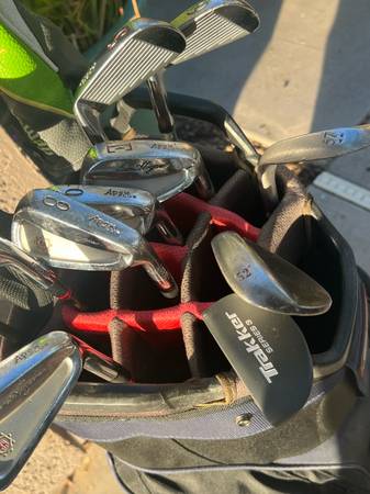 Ben Hogan forged Apex plus 3-Sw Regular graphite shafts Taylormade driver Callaway 3 wood putter all in nice Titleist golf bag ball and tees in bag