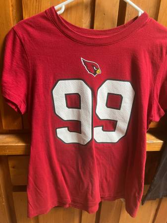 Here’s two size medium women’s #99 JJ WATT jersey shirts . I want $10.00 each firm Call John