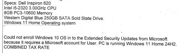 Dell Inspiron 620 Tower - Intel i5-2320 3.00GHz CPU 8GB PC3-10600 Memory / Western Digital Blue 250GB SATA Sold State Drive Windows 11 Home Operating System / PC is running Windows 11 Home 24H2