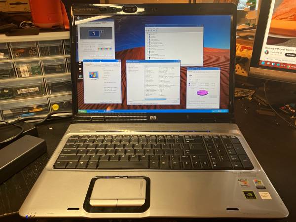 Up for sale is a used HP Pavilion dv9000 in good condition. This classic machine has been retrofitted and upgraded for your retrocomputing pleasure with a 120GB SSD and its maximum 4GB RAM.
