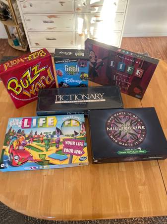 This is a lot of six brand new games 3 of them are wrapped in the original factory, sealed Pictionary and life marvelous Maisel and geek out. The other 3 games are open but brand new. If you have any questions, please let me know. Thank you and have a wonderful day.
