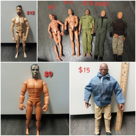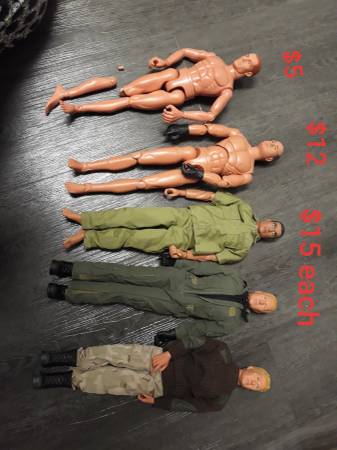 Read full description. The A.F. with clothes are $15each. Without clothes $12,(The guy WITHOUT clothes has leg imperfections,see pictures)
