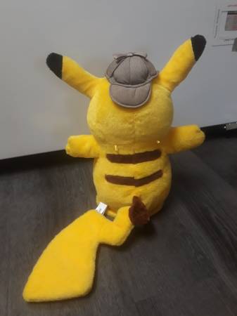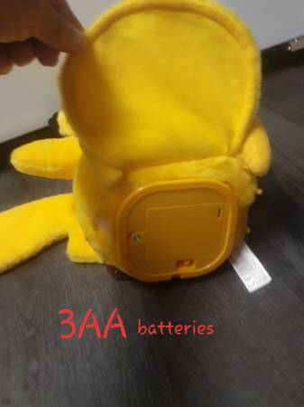 Pokemon plush is battery operated. Batteries not included. You press hand and it has pikachu voice, press tummy and then hand and voice changes to human character. $20.