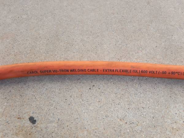 Extra flexible welding cable 1/0. CAROL SUPER VU-TRON (Orange) 91 feet. $400 70 Ft of black flexible finely stranded copper welding cable. (at least 1/0... I couldn't read the markings). $300 $500...