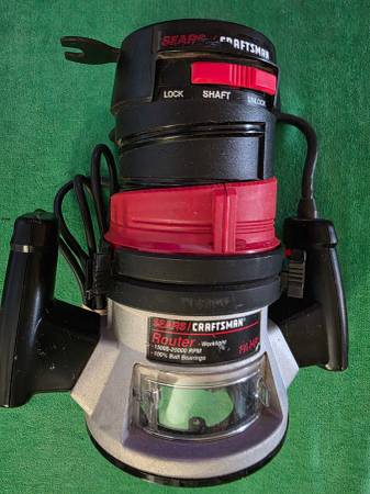 Craftsman commercial variable speed 1-3/4 hp router, 25,000 rpm fixed base router, heavy duty 120 volt power with 1/2 inch arbor. The router model #315.174720, pre-owned with little use. Please review pictures for condition and what is included. The router is for sale $50.00 Cash only. Buyer must pickup. Please call or text. 520-2 eight 9-04 nine 8 No Codes or Emails!