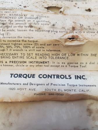 3/8 Inch Dial Torque Wrench Inch Lbs Torque Controls Inc El Monte Calif. Good condition call CALLS ONLY