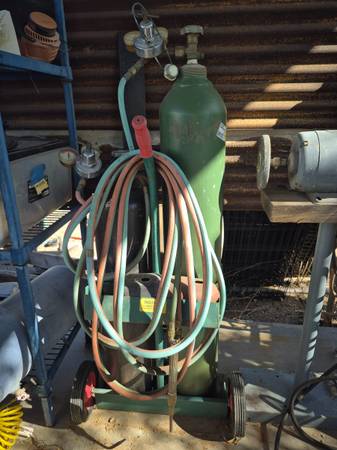 acetylene welder with full tanks with hose and torches on portable cart oxygen and acetylene