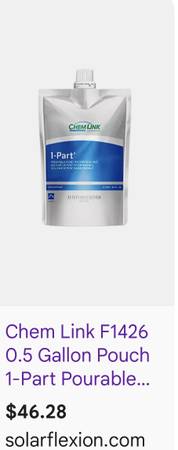 ChemLink 1-Part, Pourable Pitch Pan / Curb Sealant, GRAY, 1/2 Gallon Pouch. I have 22 of them. Text