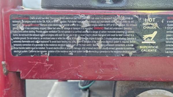 One pull start Coleman power mate 5000. Low use very good condition See pictures for best description. Text only five 2 0 two 75 nine438 $200.00