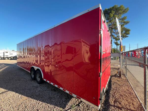 We can pick you up at Tucson International Air Port or Arrange Nationwide Delivery! See this 2024 Rock Solid 8.5x30CH V-Nose Cargo Trailer at NelsonRV.com – Nelson RV at 4060 N. Flowing Wells Rd Tucson, AZ 85705 Call our office Tuesday-Friday 8:30 AM-4:30 PM & Saturday 9 AM – 2 PM at (520) 293-1010 or During the same or other hours our iPhone Cell is 520-512-8171 (Call/Text/Facetime)