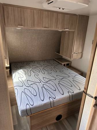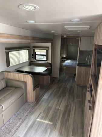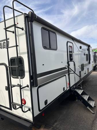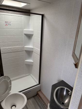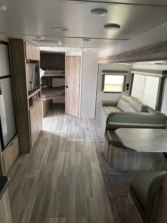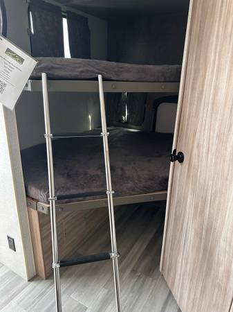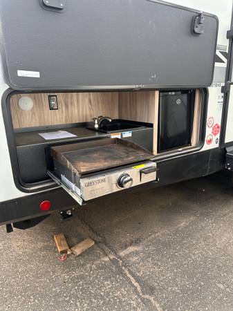 Bunk house sleeps 10! Rear bath. Outside kitchen with Blackstone grill. Rear cargo door. Walk around main bed with privacy separation. SOLAR panel with control. 60 gallon fresh tank. 2 televisions