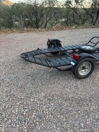 The trailer has multiple personalities it can be a side by side, motorcycle or ATV trailer. The side by side is NOT FOR SALE. MAKE Kendon. Clear AZ title