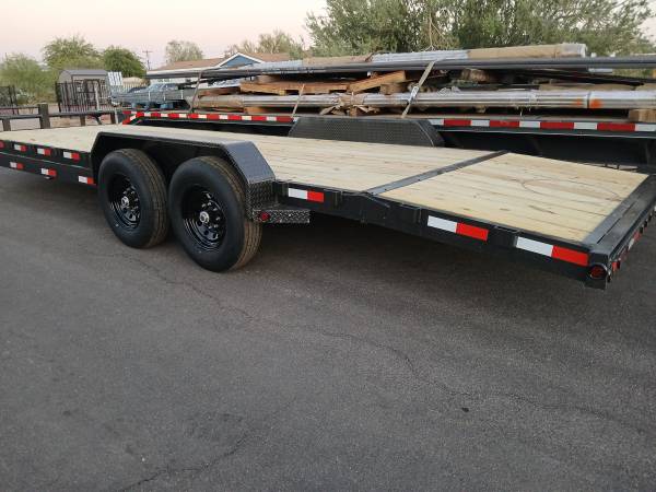 2025trailer equipment / car hauler trailer 7' x 24' 14,000 capacity 2- axles Electric brakes Slide Ramps 10k drop leg 10 ply tires Clean title hand 602 761 085five Trailer location east Apache...