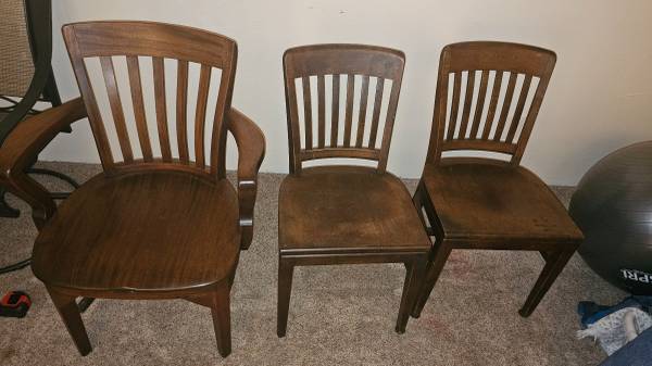 Antique office chairs, $35 each. Made in New York Sold wood. deal for collection18 Must go soon make offer will take. Please