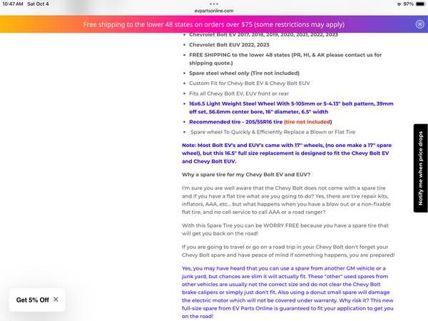 Chevy bolt full size spare tire and rim. Fits 2017 to 2023 bolt EV . Brand new. Never used.