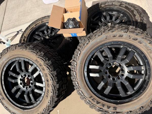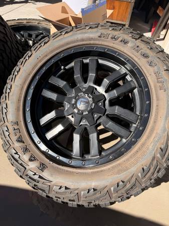 Selling a set of Fuel Sledge wheels w/ used Kanati MT tires off a 2.5 Gen Tundra. Downsized wheels so, these are ready for a new home! 📌 Specs: Model: Fuel Off-Road D596 Sledge (Double Black finish)...